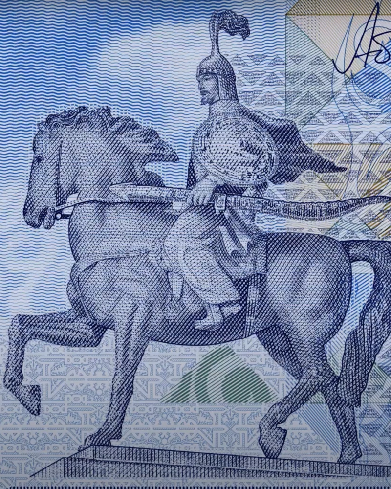 The 2000 Som banknote includes a wide variety of detailed symbols of the Kyrgyz people and the country’s beautiful and wild nature. By reading it from the bottom to the top, the banknote also tells the history – from ancient times to the modern Kyrgyzstan of today.