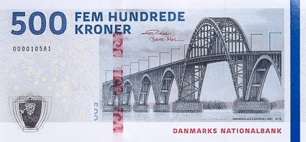 Click here for more information about the new 500-kroner banknote in Denmark.