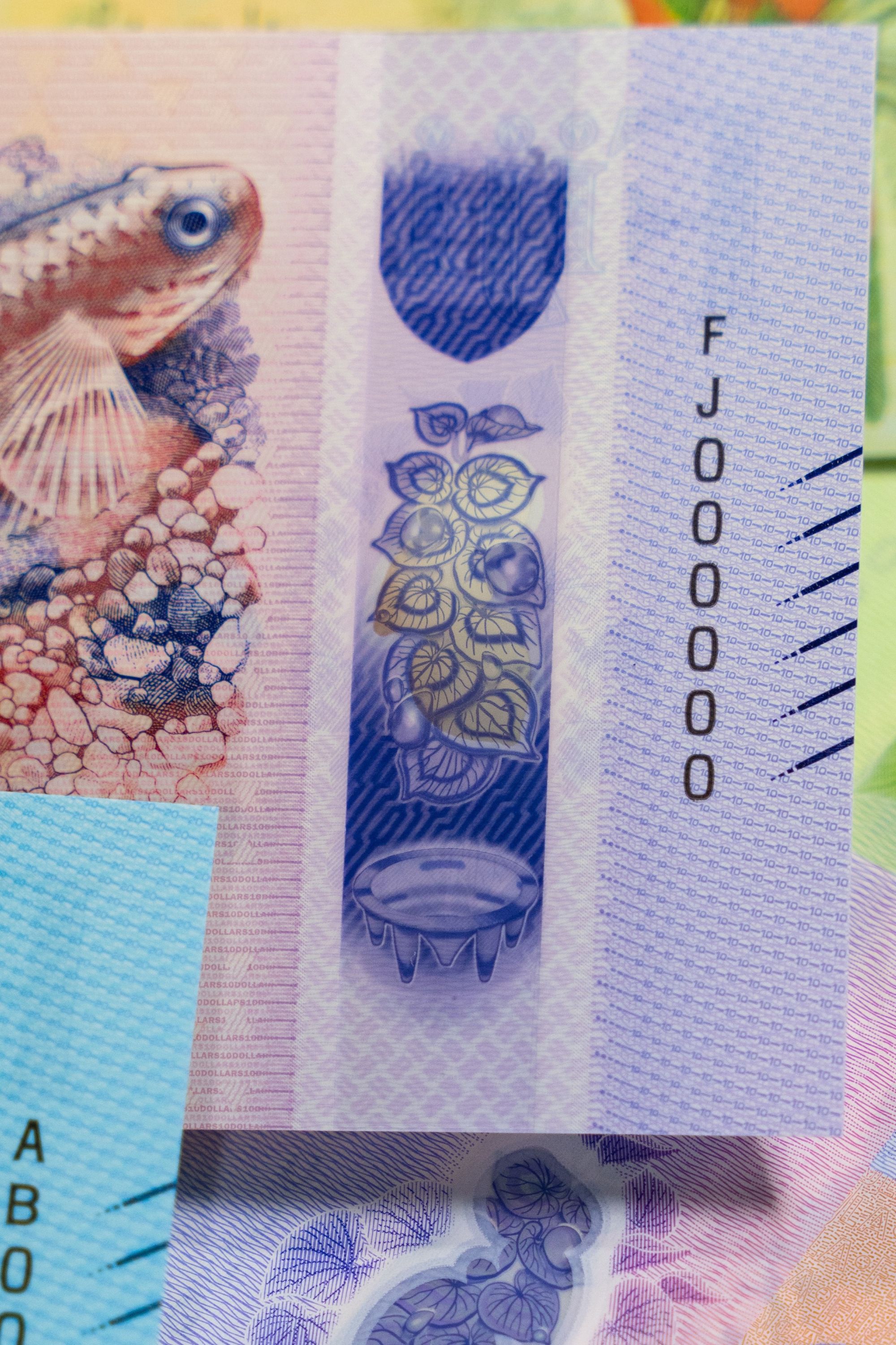 The yaqona leaves are also visible from the back of the banknote, making it easy for the public to confirm that they are handling a genuine note simply by tilting it.