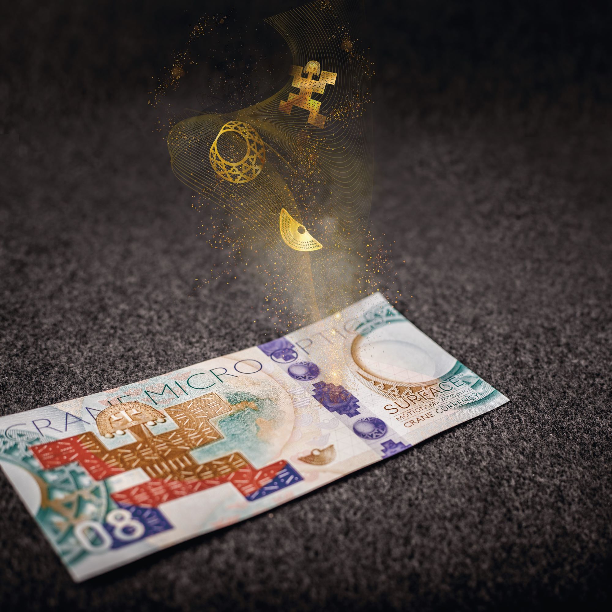 Crane Currency has launched a new and very exciting security feature built on the proven MOTION® micro-optics technology. The feature is MOTION SURFACE®. Its customized effects not only create a “Wow!” reaction, they are easily integrated into the overall banknote design.